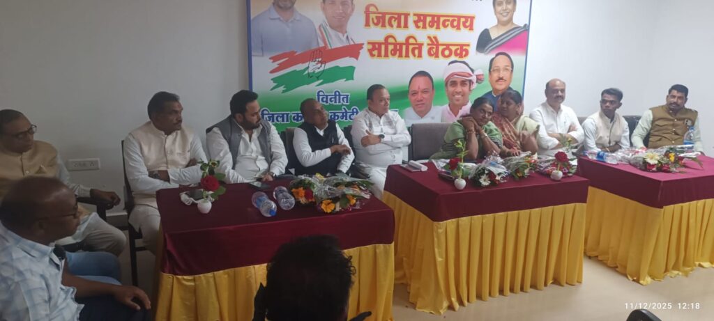 जिला कांग्रेस द्वारा अखिल भारतीय कांग्रेस कमेटी की सचिव एवं मध्य प्रदेश कांग्रेस की नवनियुक्त सह प्रभारी आंध्र प्रदेश की कांग्रेस नेता उषा नायडू की उपस्थिति में समन्वय समिति की बैठक रिसोर्ट हाल में आयोजित हुई बैठक में समस्त समन्वय समिति के सदस्य उपस्थित रहे जिले में प्रथम आगमन पर उनका स्वागत किया गया तत्पश्चात बैठक में पार्टी संगठन की मजबूती के साथ एस आई आर प्रकिया के संबंध में विचार विमर्श हुआ जिसमें मतदाता सूची में त्रुटियों मे सुधार नए मतदाताओं का पंजीकरण मतदाताओं की शिकायतें एस आई आर प्रकिया की पारदर्शिता वही पार्टी द्वारा जिले के 981 बुथों पर नियुक्त किए गए।