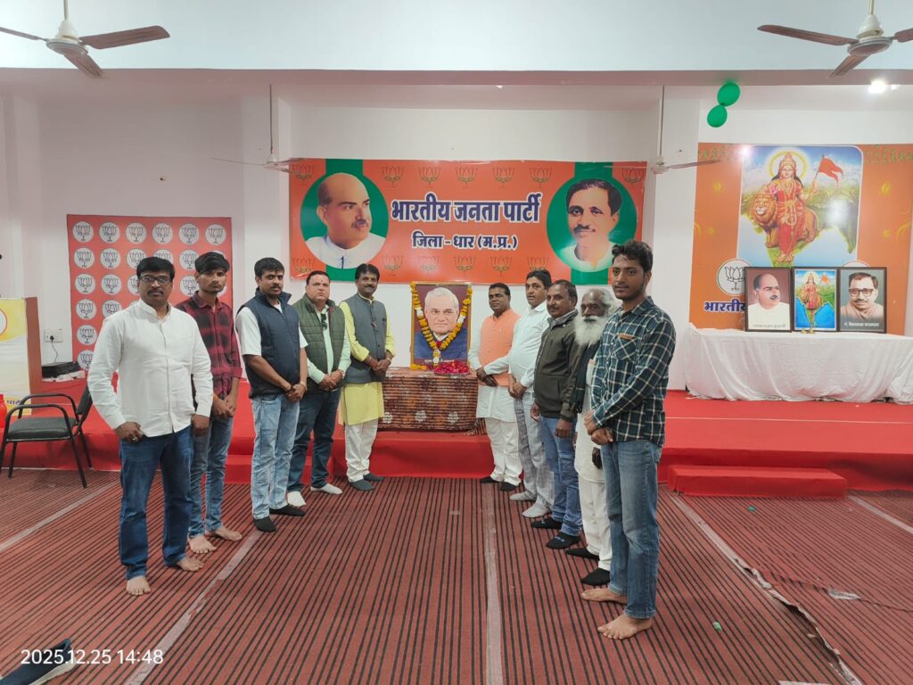 भारत भर में सुशासन, ईमानदारी के मिशाल जनसंघ , भाजपा के संस्थापक लोक नेता अटल बिहारी वाजपेई जी उनकी शताब्दी वर्ष मनाने की इस कड़ी में, मध्य प्रदेश जिला धार के प्रवास पर , धार भाजपा का कार्यलय पर भाजपा धार जिला महामंत्री देवेंद्र सनौने अजा मोर्चे धार जिला अध्यक्ष पूनमचंद फकिरा शरदारपूर मंडल में अटल जी की जयंती पर सरदारपुर सरकारी अस्पताल में फल वितरण कार्यक्रम में भारतीय गौरक्षा वाहिनी के धार गोरक्षा अध्यक्ष जिला अध्यक्ष हरीराम पटेल के नेतृत्व में सामिल होकर।