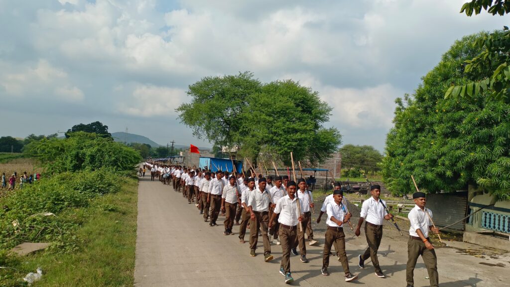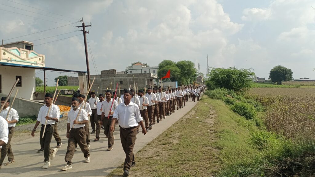 पथ संचलन माधव विद्या परिसर के हाई स्कूल प्रांगण से प्रारंभ होकर नगर के प्रमुख मार्गो से होते हुए पुनः उसी स्थान पर पहुंचा।इसके पूर्व बौद्धिक कार्यक्रम में मुख्य वक्ता के रूप में राष्ट्रीय स्वयंसेवक संघ के विभाग शारीरिक शिक्षण प्रमुख चरणसिंह चौधरी रहे उन्होंने ने स्वयंसेवको को संबोधित करते हुए कहा की हम सौभाग्यशाली स्वयंसेवक हैं जो संघ का शताब्दी वर्ष देख रहे है। और यह अवसर हमें हमारे पुरोधा रहे स्वयंसेवको के परिश्रम से मिला है। हमारी संस्कृति का जीवन मूल्य पराई स्त्री को माँ मानना, पराया धन मिट्टी के समान हैं। ऐसे जीवन मूल्य रहे हैं।